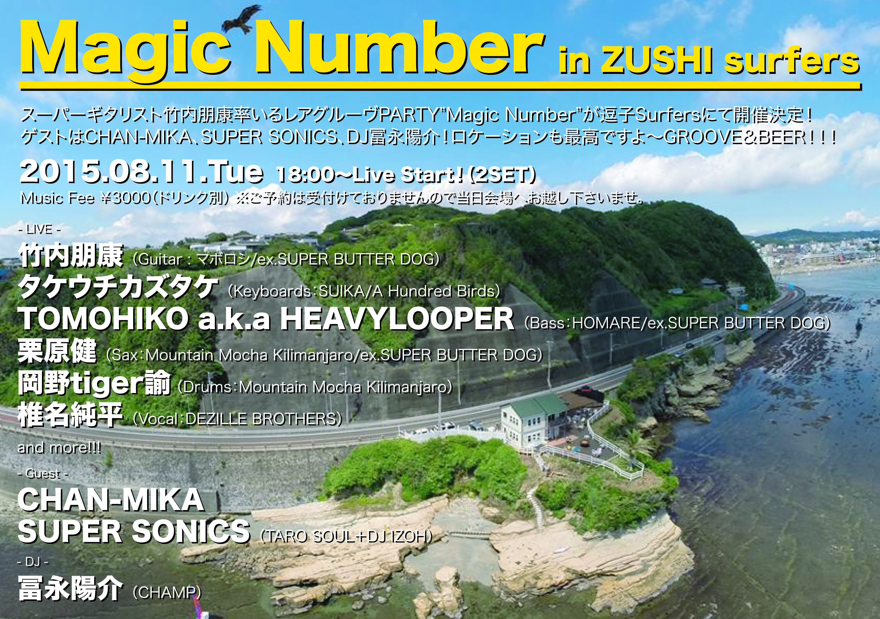 Home / ★Magic Number in ZUSHI surfers〜ゲスト:CHAN-MIKA、SUPER SONICS、DJ冨永陽介★