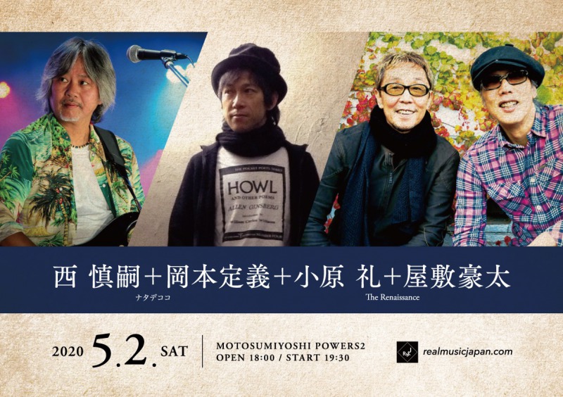 ★ルネデココ〜西 慎嗣+岡本定義+小原礼+屋敷豪太★ 2020/5/2(土)@元住吉POWERS2