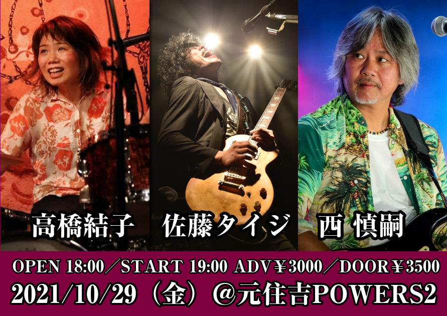シアターブルックの佐藤タイジ、レジェンドギタリスト西 慎嗣、多方面で活躍するドラマー高橋結子による予測不能のスーパーセッションが実現!さらに爆笑トークで免疫力UP!お楽しみに☆