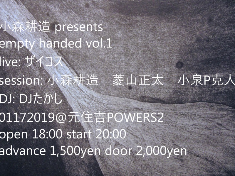 ★小森耕造 presents, “empty handed vol.1″ PARTY〜Zycos×セッション×DJたかし★