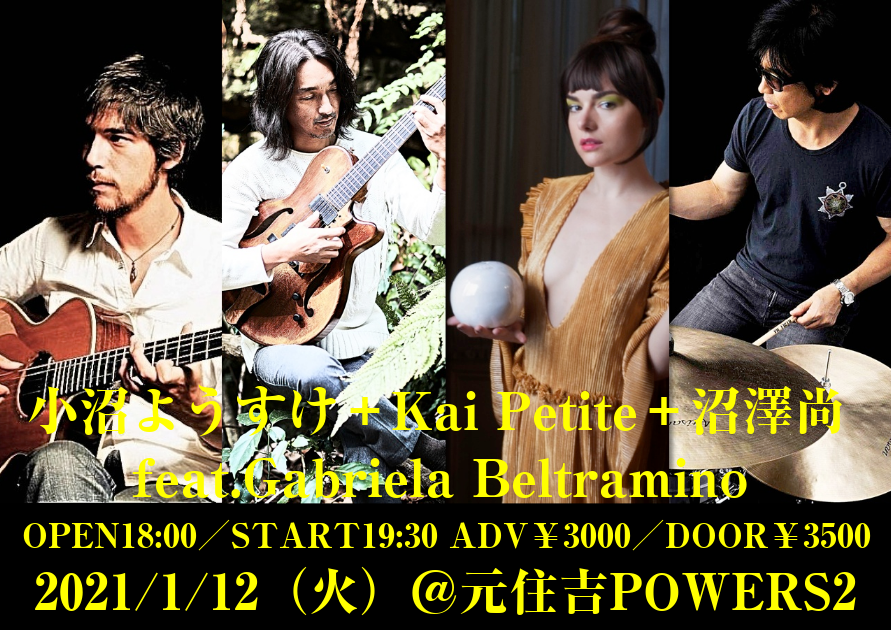 日本を代表するジャズギタリスト小沼ようすけとマルチプレイヤーKai Petite、世界が認めたGROOVEドラマー沼澤尚、そしてアルゼンチンから来日中のGabriela Beltraminoを迎えた新春スペシャルセッション!お楽しみに☆