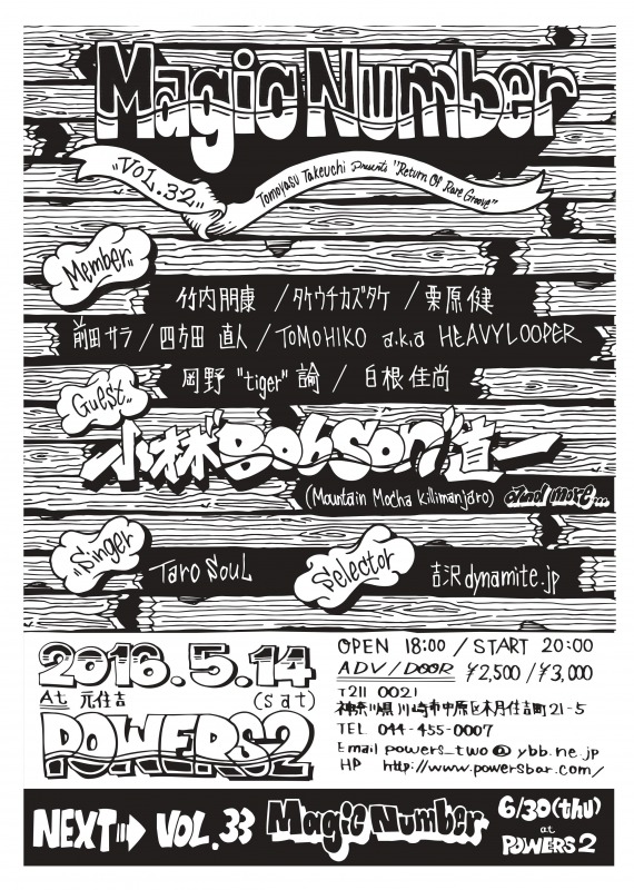 スーパーギタリスト竹内朋康 presents ”Magic Number Vol.32”、久しぶりの土曜日開催!ゲストはモカキリのギタリスト小林”Bobsan”直一とDJ吉沢dynamite.jp!さらにCHAN-MIKAの出演が決定!!