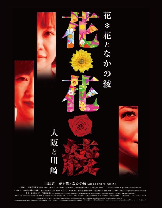 「さよなら大好きな人」でお馴染みの花*花とFMヨコハマ「今夜もおきばりさん!」でパーソナリティを務めるなかの綾とのコラボLIVE開催決定!ゲストミュージシャンも迎えてワイワイやります!お楽しみに☆