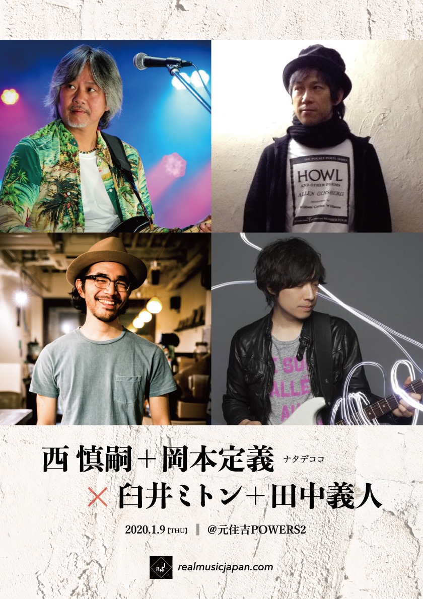 西慎嗣+岡本定義のナタデココと臼井ミトン+田中義人のデュオによるツーマンLIVE開催決定!新年早々おめでたいコラボです。お楽しみに☆
