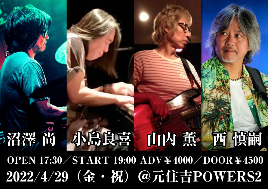 伝説のバンド”スペクトラム”のメンバーであり、スライ&ロビーとの活動や様々なアーティストのプロデュースで知られる西 慎嗣。アレンジャー・サウンドプロデューサーとして数々のメジャーアーティストを手掛ける小島良喜。角松敏生、岩崎宏美、加山雄三などのサポートを務める山内薫。日本が世界に誇るナンバーワンGROOVEドラマー沼澤尚。ミュージシャンズミュージシャンによるスペシャルライブが実現!