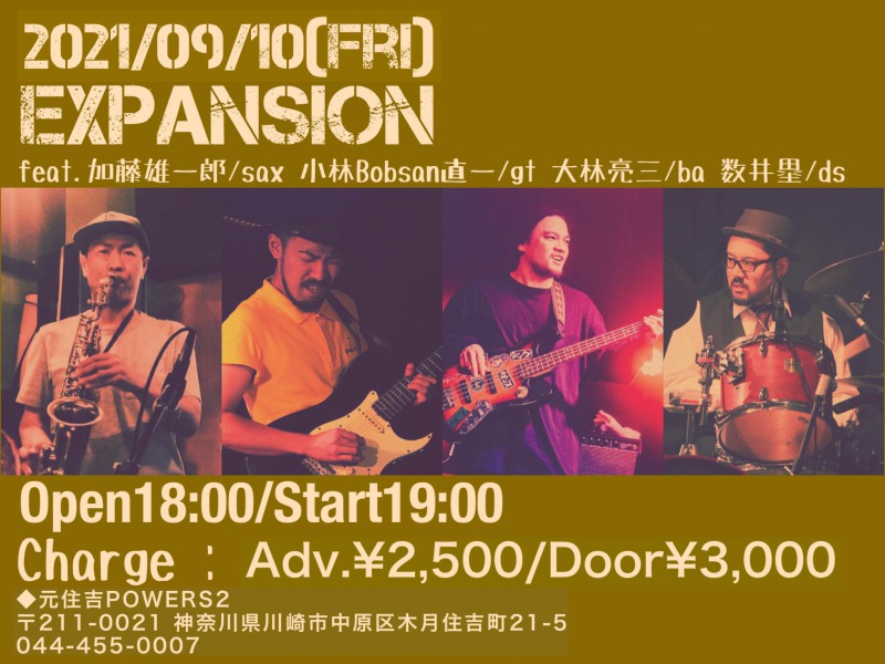 NATSUMEN、L.E.D.の加藤雄一郎、Mountain Mocha Kilimanjaro、EMILANDの小林Bobsan直一、SANABAGUN.の大林亮三、モミーFUNK!の数井塁によって結成されたニュータイプオールドスクールファンクユニット「EXPANSION」始動!!!