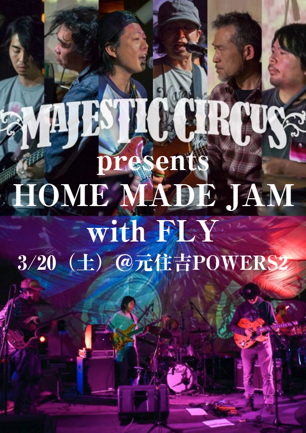 2002年の結成から日本を代表するJam Bandとして活躍し続けるMajestic Circus presents HOME MADE JAM開催決定!結成23年、Grateful DeadやPhishなどアメリカのジャムバンドに影響を受け日本のJamシーンを盛り上げてきたFLYを迎えJammin’な一夜をお届けします☆