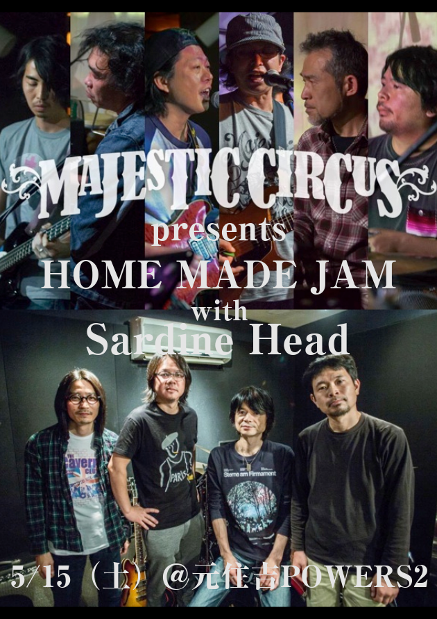Majestic Circus presents ”HOME MADE JAM”開催決定!2002年の結成から日本を代表するJam Bandとして活躍し続けるMajestic Circus、圧倒的な演奏力と個性的かつユニークな楽曲でJam Bandフリークからミュージシャンまで絶大な支持を得るSardine Headによる待望のツーマン!お楽しみに☆
