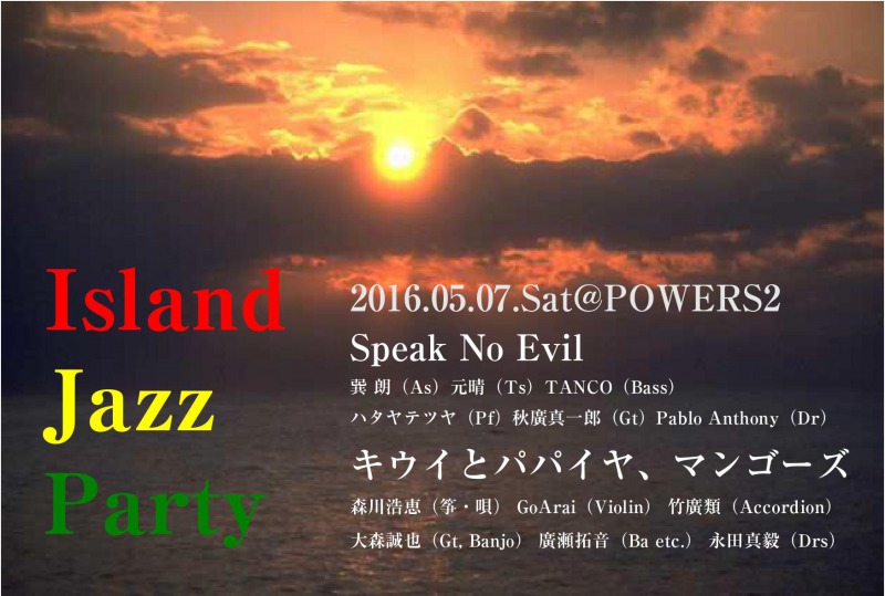 Home / ★Island Jazz Party〜Speak No Evil×キウイとパパイヤ、マンゴーズ★