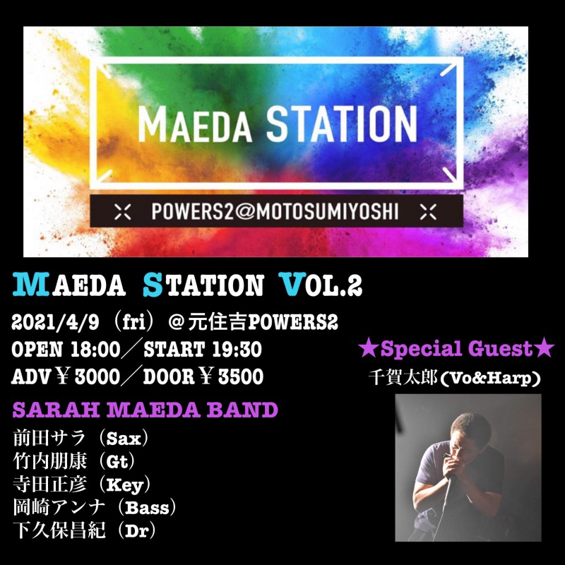 Momiji&The Bluestones、honey drops、the day等幅広く活躍する若手実力派Sax奏者・前田サラ率いる前田サラBAND presents「MAEDA STATION VOL.2」開催決定!スペシャルゲストにMONSTER TAI-RIKUの超絶ハーモニカプレイヤー千賀太郎を迎えGROOVEします!お楽しみに☆