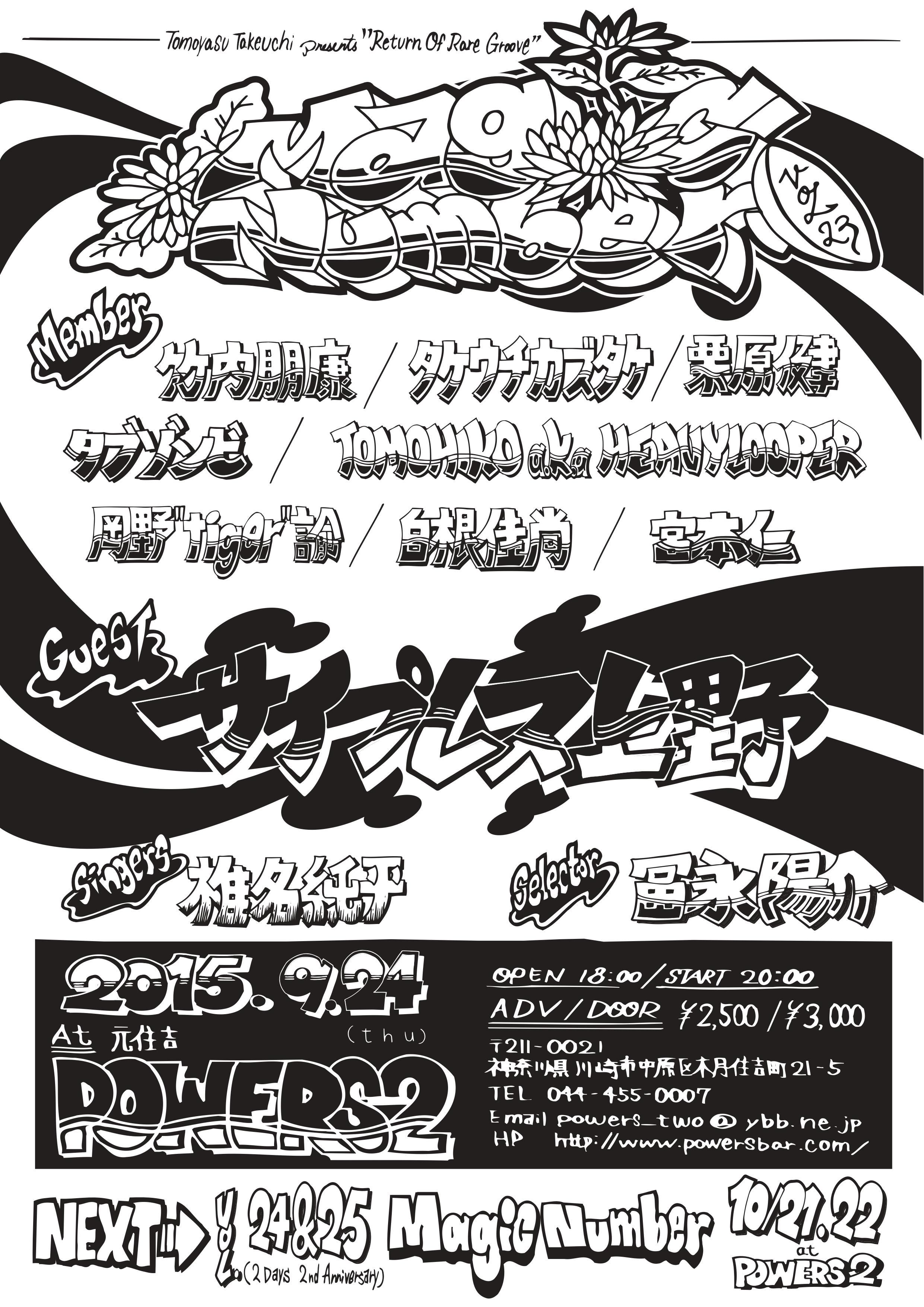 スーパーギタリスト竹内朋康 presents Magic Number Vol.23開催決定!ゲストはサ上とロ吉でお馴染みのサイプレス上野!そしてDJ冨永陽介!秋の夜長にレアグルーヴ満載でお届けします!!