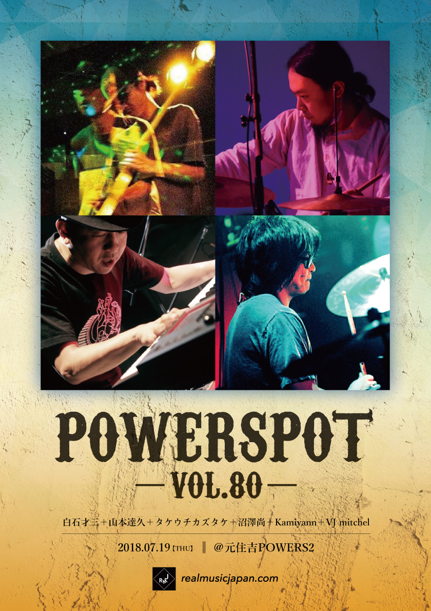 ★POWERSPOT Vol.80〜白石才三+山本達久+タケウチカズタケ+沼澤尚+Kamiyann+VJ mitchel★