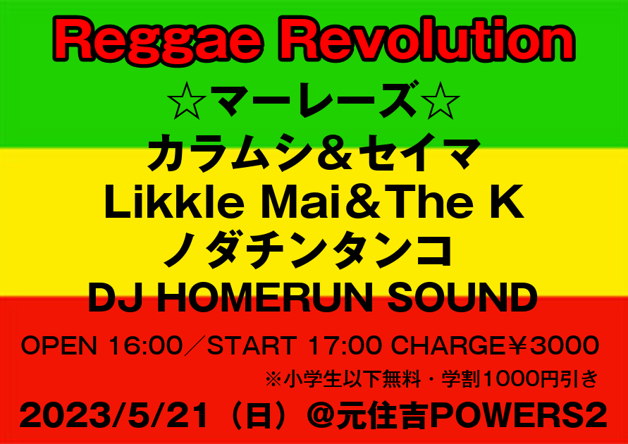 レゲエ好きのレゲエ好きによるレゲエ好きのためのPARTY「Reggae Revolution」開催決定!みんな集マーレー♪