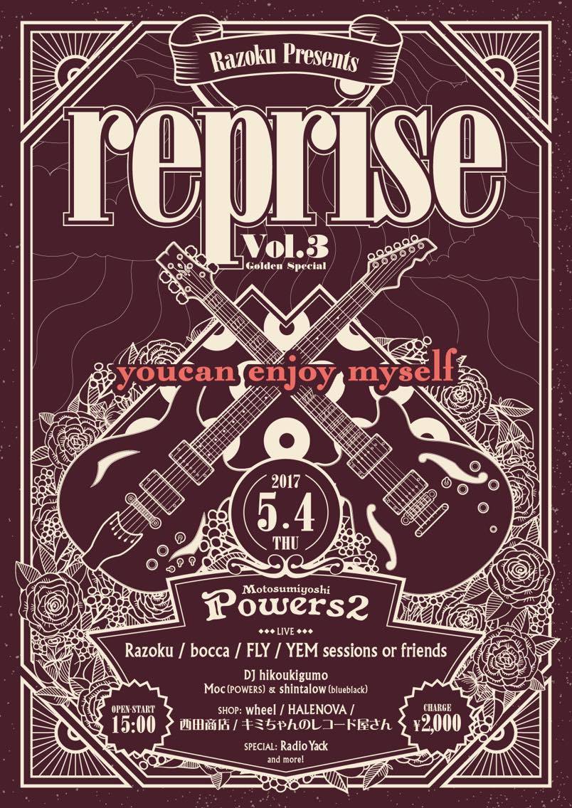 らぞくpresents”reprise” Vol.3開催決定!「Youcan Enjoy My Self」なGWスペシャル!昼間からPARTYだよー☆