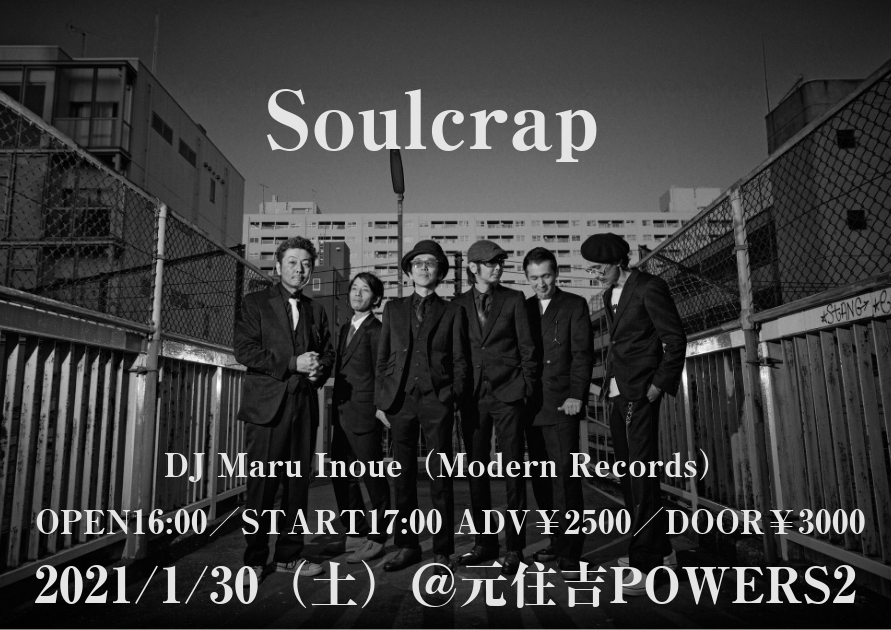 スカ・レゲエシーンはもとよりモッズ、パンク、ガレージなど各方面から熱い支持を集めるRiddim&Bluesバンド”Soulcrap”待望のワンマンLIVE開催決定!