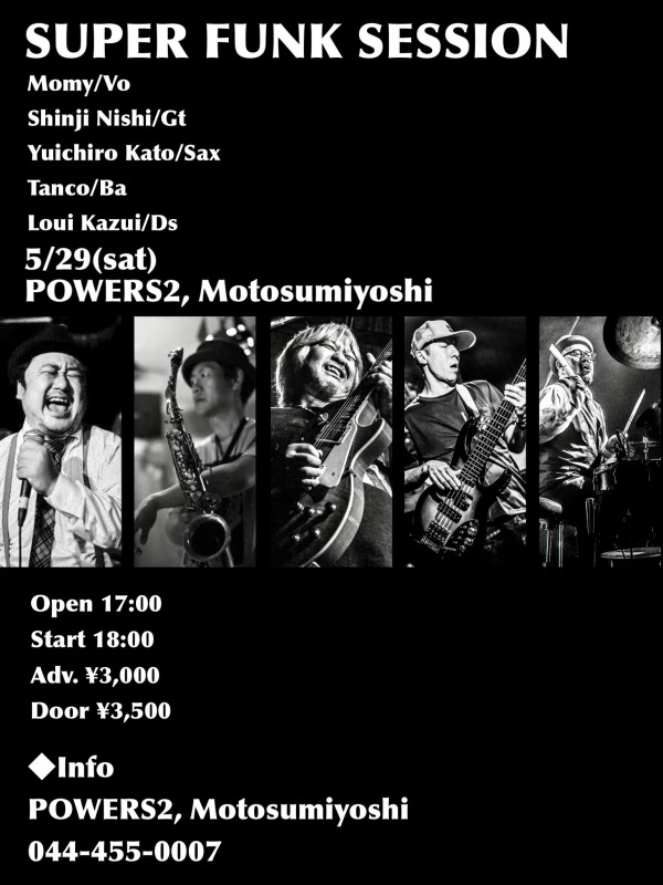 レジェンドギタリスト西慎嗣、HOME GROWNのTanco、NATSUMEN等で活躍する加藤雄一郎、そしてモミーFUNK!のモミーと数井塁による「SUPER FUNK SESSION!!!」開催決定!