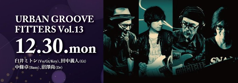 ブルース・ザ・ブッチャー、シアターブルック、OKI DUB AINU BAND等で活躍する沼澤尚と中條卓による最強リズムセクション、話題沸騰中の実力派シンガーソングライター臼井ミトン、奇跡の復活を果たしたギタリスト田中義人による「URBAN GROOVE-FITTERS」開催決定!今年のLIVE納めはこれで決まり☆