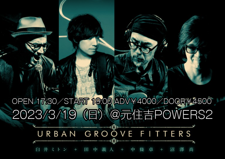 ブルース・ザ・ブッチャー、シアターブルック、OKI DUB AINU BAND等で活躍する沼澤尚と中條卓の最強リズムセクション、話題沸騰中の実力派シンガーソングライター臼井ミトン、奇跡の復活を果たしたギタリスト田中義人による「URBAN GROOVE-FITTERS」開催決定!お楽しみに☆