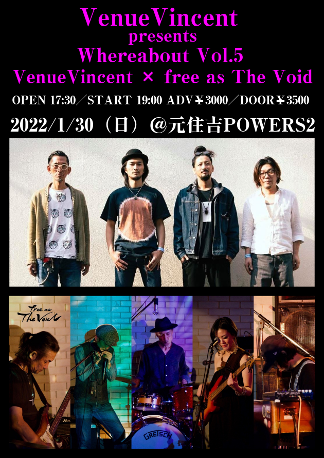 Home / ★VenueVincent presents Whereabout Vol.5〜Venue Vincent × free as The Void★