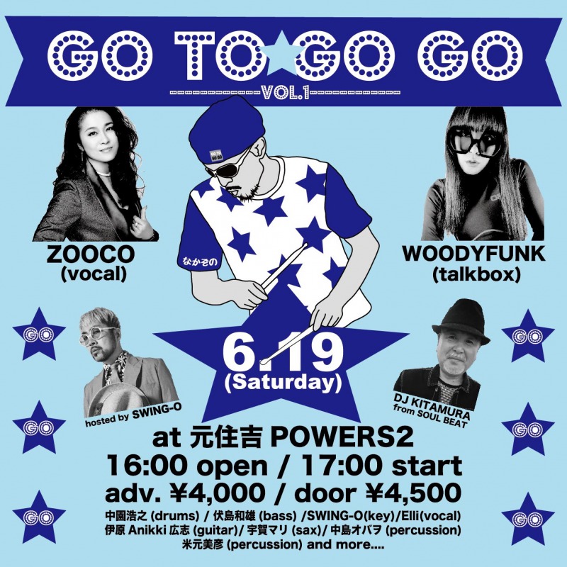 GO GOとは、ワシントンD.C.で誕生した音楽ジャンルの呼称。チャックブラウンらが1970年代に創造した、パーカッションを多用した同じビートを延々と持続する音楽形態である。