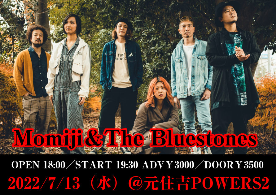 若手最注目BLUESシンガー大久保紅葉、元SUPER BUTTER DOGのギタリスト竹内朋康、浪速のブルースマン・コサカジュンペイ、ゴスペルをルーツに持つSAX奏者・前田サラ、そして大神田智彦&白根佳尚の最強リズムセクションによるMomiji&The BluestonesワンマンLIVE開催決定!