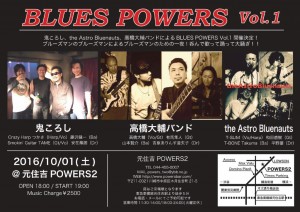 鬼ころし、the Astro Bluenauts、高橋大輔バンドによるBLUES POWERS Vol.1開催決定!ブルーズマンのブルーズマンによるブルーズマンのための一夜!呑んで歌って踊って大騒ぎ!! ★BLUES POWERS〜Vol.1★ 2016/10/01(土)@元住吉POWERS2 OPEN 18:00/START 19:00 Music Cha…