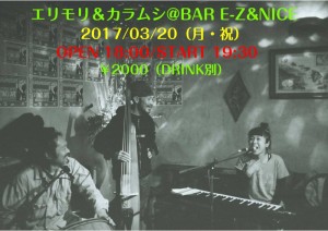 さらに詳しく »エリモリ&カラムシが高座渋谷のパワースポット”BAR E-Z&NICE”に初登場!レゲエのスペシャリストによるインストあり歌モノありのアイリーセッションは必見です!! ★エリモリ&カラムシ@BAR E-Z&NICE★ 2017/03/20(月・祝)@高座渋谷BAR E-Z&NICE OPEN 18:00/START 19:30(2SE…