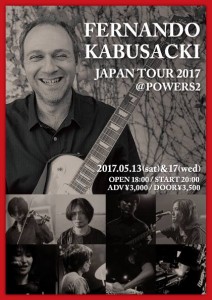 さらに詳しく »アルゼンチンの至宝、フェルナンド・カブサッキ来日公演決定!盟友・勝井祐二を筆頭に、ナカコー、ナスノミツル、シュガー吉永、大野由美子、沼澤尚、内田直之、ササキヒデアキと繰り広げる2DAYS、予測不能のインプロビゼーションは必見! ★フェルナンド・カブサッキJAPANツアー2017★ 2017/05/13(土)@元住吉POWERS2 OPEN 18:00/STA…