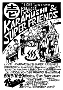 さらに詳しく »厚木が誇るメッセンジャーKARAMUSHIがJAHのお導きで魅き合わされた5人の音楽家と贈る記念すべき第1弾「壱」リリースPARTY開催決定!DJはEXODELIC a.k.a. NGKB!さらに今回ジャケットを手掛けたKads Miida氏によるLIVE PAINTING&即売会も行います!言いづらいことを言うKARAMUSHIが目指す様式美の新境地。笑う…