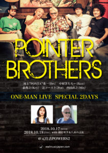 さらに詳しく »村上”PONTA”秀一+中村きたろーによる最強リズムセクション、天才プロデューサー&キーボーディスト森俊之、孤高のパーカッショニスト辻コースケ、国内屈指のトップミュージシャンによるモンスターバンド”POINTER BROTHERS”ワンマンLIVE開催決定!ゲストに前田サラと八木のぶおを迎えてお届けします☆ ★POINTER BROTHERSワンマンLIVE…
