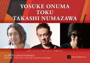 さらに詳しく »日本を代表するジャズギタリスト小沼ようすけ、唯一無二のフリューゲルホルン奏者TOKU、世界が認めたGROOVEドラマー沼澤尚による超プレミアムLIVEが決定!80名限定の為ご予約はお早めに☆ ★小沼ようすけ+TOKU+沼澤尚★ 2018/10/31(水)@元住吉POWERS2 OPEN 18:00/START 20:00 ADV¥4000/DOOR¥4500…