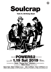 さらに詳しく »スカ・レゲエシーンはもちろん、モッズ、パンク、ガレージなど各方面から熱い支持を集める”RIDDIM & BLUES”バンド、SoulcrapワンマンLIVE開催決定!しかもTaiki誕生日です!みんなでお祝いしましょう☆ ★SoulcrapワンマンLIVE〜Taiki Birthday Bash!!!★ 2019/01/19(土)@元住吉POWERS…