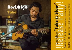 さらに詳しく »スペシャル・ゲストになんとパーカッショニスト・山北健一、辻コースケを迎え、皆様の2019年と新作CDへの招福パーティ!新曲など、この日限りのスペシャル・セッションです。 ★Norishige 2nd Album「Take it Slow」Release PARTY!2019招福大会★ 2019/1/18(金)@元住吉POWERS2 OPEN 18:00/ST…