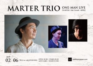 さらに詳しく »2018年夏にメジャーデビューを果たしたMARTERが凄腕ベーシストZak Croxall、GROOVEドラマー沼澤尚とトリオ編成で登場!魅惑のハスキーボイスと強力なリズム隊で未知の領域へ挑む! ★MARTER TRIO【MARTER+Zak Croxall+沼澤尚】ワンマンLIVE★ 2019/02/06(水)@元住吉POWERS2 OPEN 18:00/…