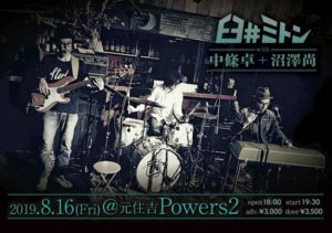 さらに詳しく »話題のシンガーソングライター臼井ミトンと中條卓+沼澤尚による最強リズムセクションでお届けする極上の一夜。お見逃しなく☆ ★臼井ミトン with 中條卓+沼澤尚ワンマンLIVE★ 2019/08/16(金)@元住吉POWERS2 OPEN 18:00/START 19:30 ADV¥3000/DOOR¥3500 ■LIVE 臼井ミトン(Vo,Gt,Key) 中…