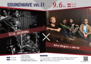 さらに詳しく »Afro Begue presents Soundwave Vol.11開催決定!11回目のゲストはF.I.B JOURNALが山崎円城(Vo+G)+真船勝博(Wb)+沼直也(Dr)のオリジナルメンバーで登場!Afro Begueも久しぶりにSax藤原大輔を迎えてのスペシャル版。F.I.B JOURNALの唯一無二の世界感にAfro Begueのアフロビート…