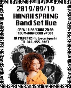 さらに詳しく »5オクターブの美声を持つ最注目アーティストHanah Springが強力なメンバーを率いてPOWERS2に登場!一夜限りのスペシャルLIVEをお届けします。お楽しみに☆ ★Hanah Spring Band Set LIVE★ 2019/09/19(木)@元住吉POWERS2 OPEN 18:30/START 20:00 ADV¥4000/DOOR¥4500…