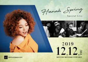 さらに詳しく »5オクターブの美声を持つ”Diva”Hanah Spring今年最後のバンドセットワンマンLIVE開催決定!最強メンバーでお届けする名曲の数々、お楽しみに☆ ★Hanah Spring Special Live〜Hanah Spring+吉田サトシ+小林眞樹+森俊之+沼澤尚★ 2019/12/12(木)@元住吉POWERS2 OPEN 18:30/START…