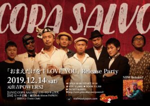さらに詳しく »ラテン・ロッカーズ COPA SALVO「おまえだけを I LOVE YOU」リリースPARTY開催決定!盟友ロス・ランチェロスを対バンに迎え、さらにDJ陣にピーチ岩崎、雨宮ksk、田中トシという豪華メンツでお届けします!POWERS2でレコーディングした曲をPOWERS2で聴けちゃうスペシャルナイト☆ ★COPA SALVO「おまえだけを I LOVE Y…