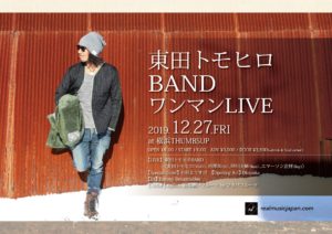 さらに詳しく »毎年好例の東田トモヒロBANDワンマンLIVE開催決定!今年も強力なメンバーと共に小沼ようすけをゲストに迎えスペシャルな一夜をお届けします☆ ★東田トモヒロBANDワンマンLIVE★ 2019/12/27(金)@横浜THUMBSUP OPEN 18:00/START 19:00 ADV¥3000/DOOR¥3500(+drink & food ord…
