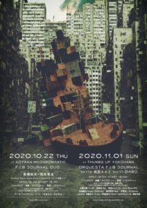★Orquesta F.I.B JOURNAL meets 武田カオリ Guest DABO★ 2020/11/1(日)@横浜THUMBS UP OPEN 18:00/START 19:00 CHARGE¥4000(要予約:70名限定) ■LIVE Orquesta F.I.B JOURNAL 山崎円城(Vo+G) 沼直也(Dr) 武田カオリ(Vo)TICA…