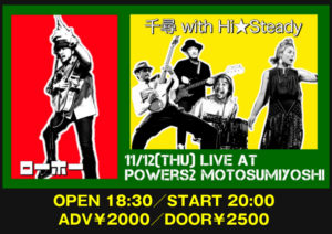 さらに詳しく »アングラ界隈で話題沸騰中の大阪の異端児ローホーがついにPOWERS2に登場!さらに鈴木井咲(モミーFUNK!)、青柳MAH真順(光風&GREEN MASSIVE)、吉川英二(MASTARICA,CHAN-MIKA Band)による魅惑のトロピカル・ヤサグレ・トリオ「Hi☆Steady」がハマの歌姫千尋とコラボ!お見逃しなく☆ ★ローホー × 千尋 with …