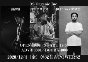さらに詳しく »M/Organic Inc. 松下マサナオ Yasei Collective,GFJB 柳下”DAYO”武史 SPECIAL OTHERS 三浦淳悟 PETROLZ シンプルでオーガニックなグルーブのみを突き詰めるためのトリオ・・・M/Organic Inc. なんとなくそこにある、ふわっとしてるのにリッチな何か。生で聴きに来て欲しい。 ★M/Organic…