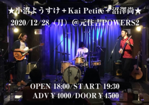 さらに詳しく »日本を代表するジャズギタリスト小沼ようすけとマルチプレイヤーKai Petite、そして世界が認めたGROOVEドラマー沼澤尚、超絶トリオによるスペシャルLIVE!POWERS2自慢の美味しいお食事&お酒と共にお楽しみ下さいませ☆ ★小沼ようすけ+Kai Petite+沼澤尚★ 2020/12/28(月)@元住吉POWERS2 OPEN 18:00/STAR…