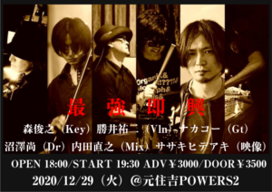 さらに詳しく »天才プロデューサー&キーボーディスト森俊之、ROVOの勝井祐二、元スーパーカーのナカコー、GROOVEドラマー沼澤尚、DUBマスター内田直之、そして映像ササキヒデアキ。毎年好例のインプロ忘年会が今年も開催決定!予測不能、制御不能の完全即興LIVEをお見逃しなく☆ ★最強即興〜森俊之+勝井祐二+ナカコー+沼澤尚+内田直之+ササキヒデアキ★ 2020/12/29…