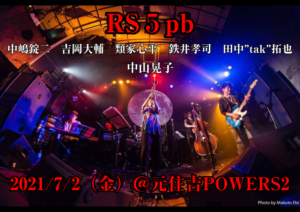 さらに詳しく »日本を代表するトランペッター類家心平率いるオルタナティヴジャズバンド「RS5pb」ワンマンLIVE開催決定!映像に中山晃子を迎え奇跡のコラボが実現! ★RS5pb with 中山晃子★ 2021/7/2(金)@元住吉POWERS2 OPEN 18:00/START 19:00 ADV¥3000/DOOR¥3500 要予約:規定人数に達し次第受付終了とさせて…