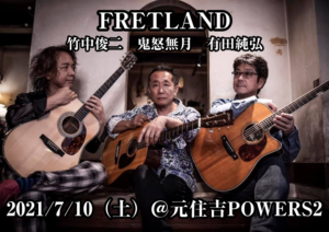 さらに詳しく »超絶ギタリスト鬼怒無月・生誕57周年記念ライブ5DAYS開催決定!四日目はハイパーアコースティックギタートリオ「FRETLAND」が登場! ★FRETLAND〜鬼怒無月+有田純弘+竹中俊二★ 2021/7/10(土)@元住吉POWERS2 OPEN 17:00/START 18:00 ADV¥3000/DOOR¥3500 要予約:規定人数に達し次第受付終了…