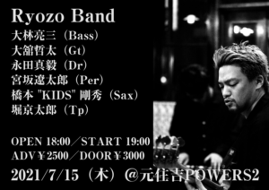 さらに詳しく »SANABAGUN.のベーシスト大林亮三率いるRyozo BandワンマンLIVE開催決定!記念すべきPOWERS2初登場!集えー!! ★Ryozo BandワンマンLIVE★ 2021/7/15(木)@元住吉POWERS2 OPEN 18:00/START 19:00 ADV¥2500/DOOR¥3000 要予約:規定人数に達し次第受付終了とさせて頂きま…