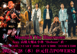 さらに詳しく »若手最注目BLUESシンガー大久保紅葉、元SUPER BUTTER DOGのギタリスト竹内朋康、浪速のブルースマン小阪惇平、ゴスペルをルーツに持つSAX奏者・前田サラ、そして大神田智彦&白根佳尚の最強リズムセクションによるMomiji&The BluestonesワンマンLIVE開催決定!ゲストにブルースシンガー高橋大輔とモカキリやEMILANDのギタリスト…