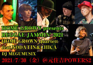 さらに詳しく »日本を代表するレゲエバンドHOME GROWNによるREGGAE JAMMIN’ 2021開催決定!ゲストにPUSHIM等のサポートで活躍するギタリストNODATINと数々のメジャーアーティストへの楽曲提供やコーラスを務めるシンガーCHICAを迎えスペシャルな一夜をお届けします!お楽しみに☆ ★HOME GROWN presents REGGAE JAMMI…